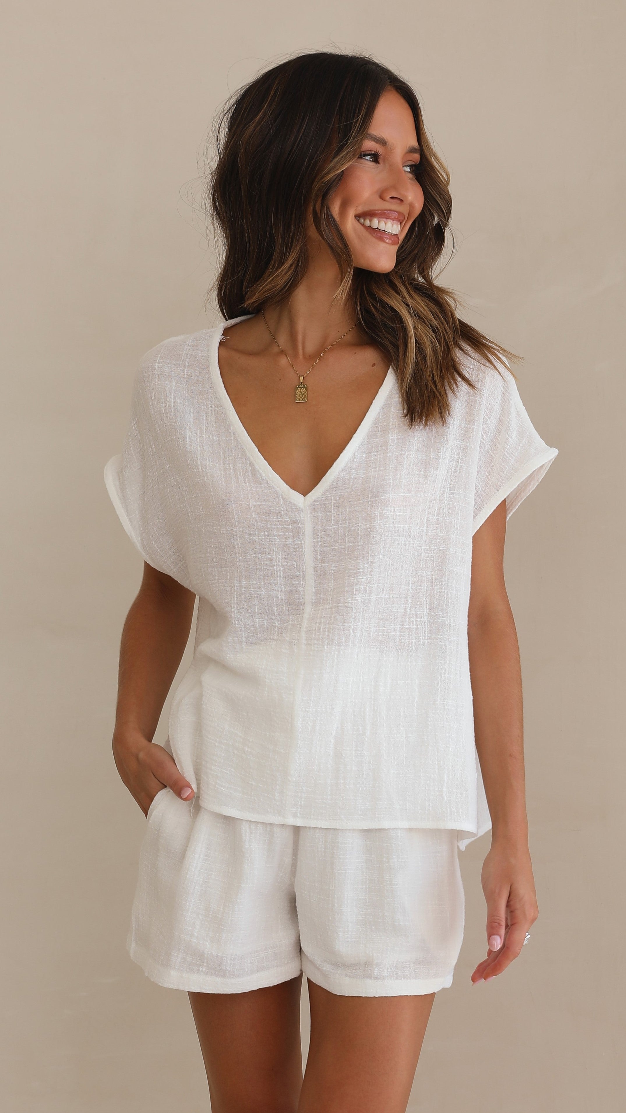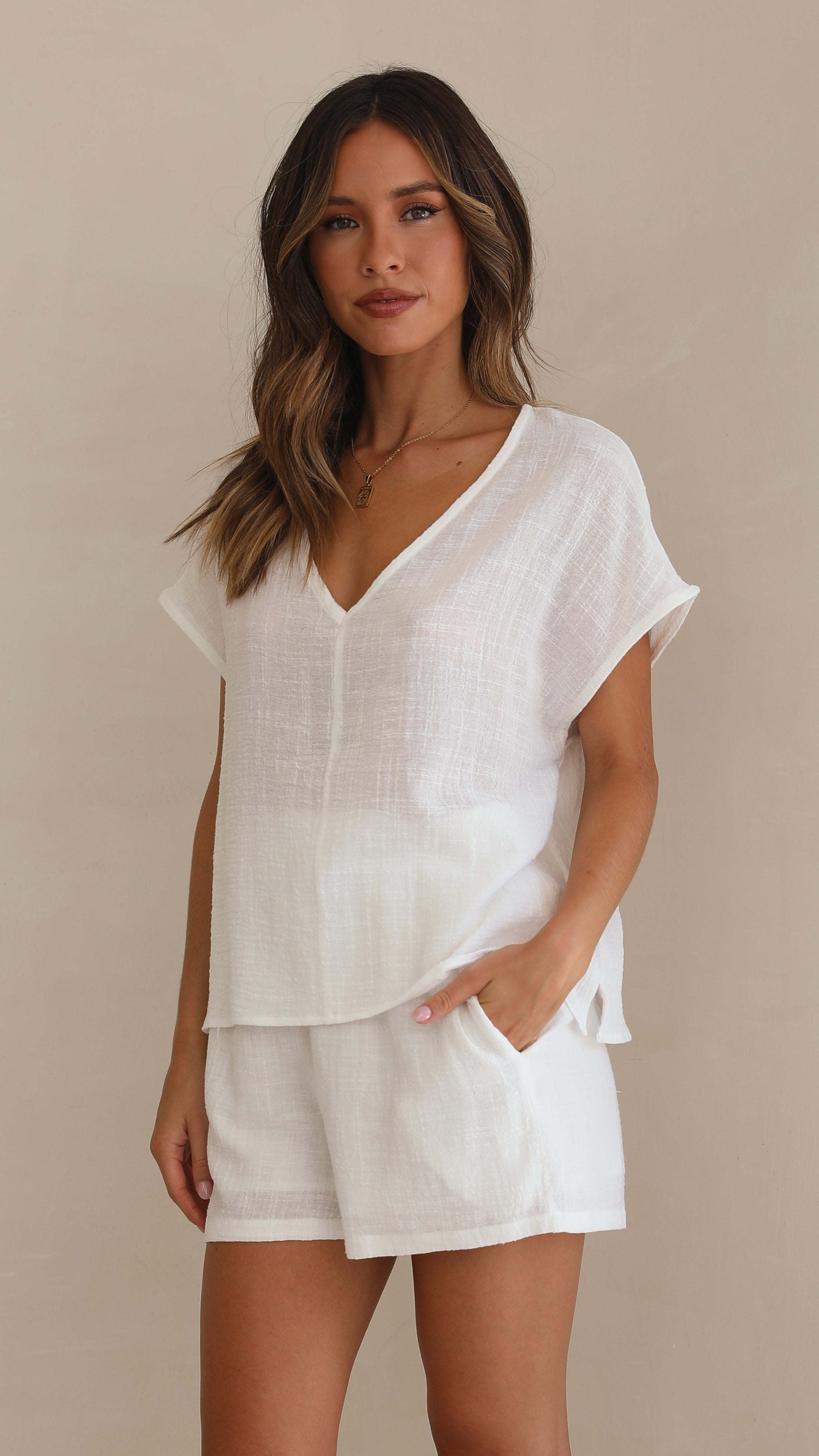Get the look Cabo Tee - White and Zariah Slide - Desert