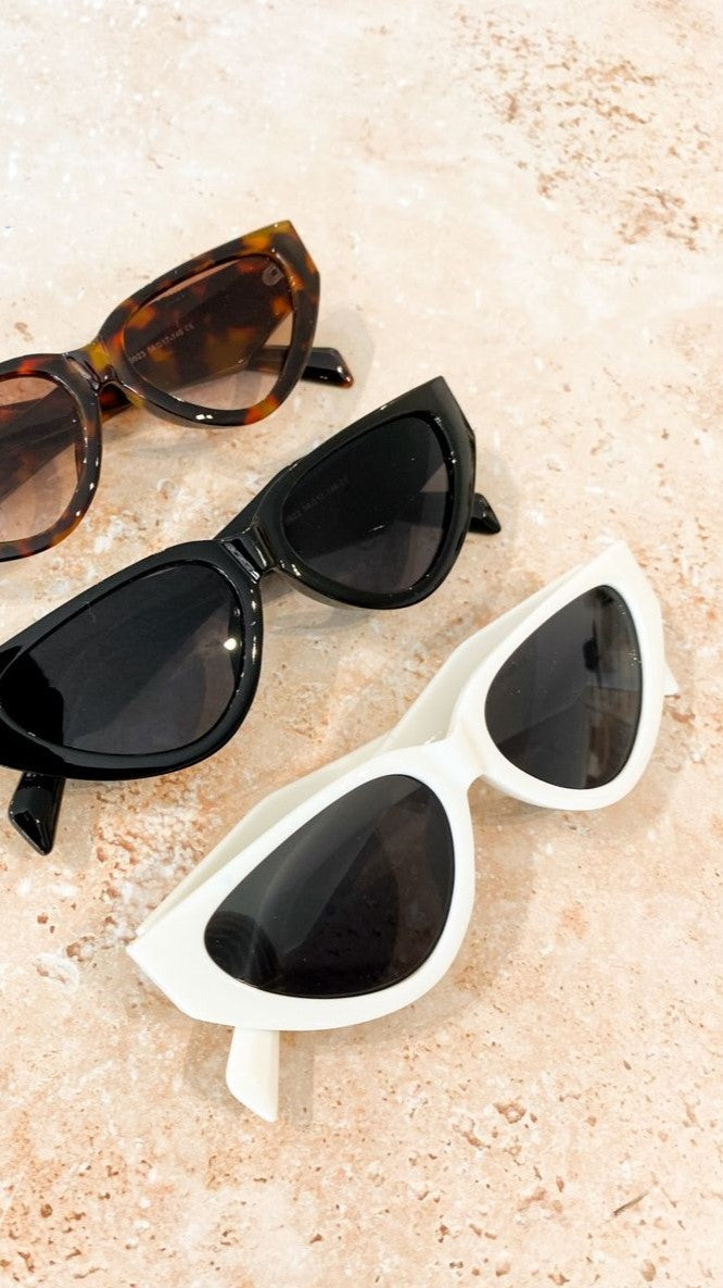 The Carla Sunglasses feature bold white frames and black lenses and are the perfect way to make a statement!