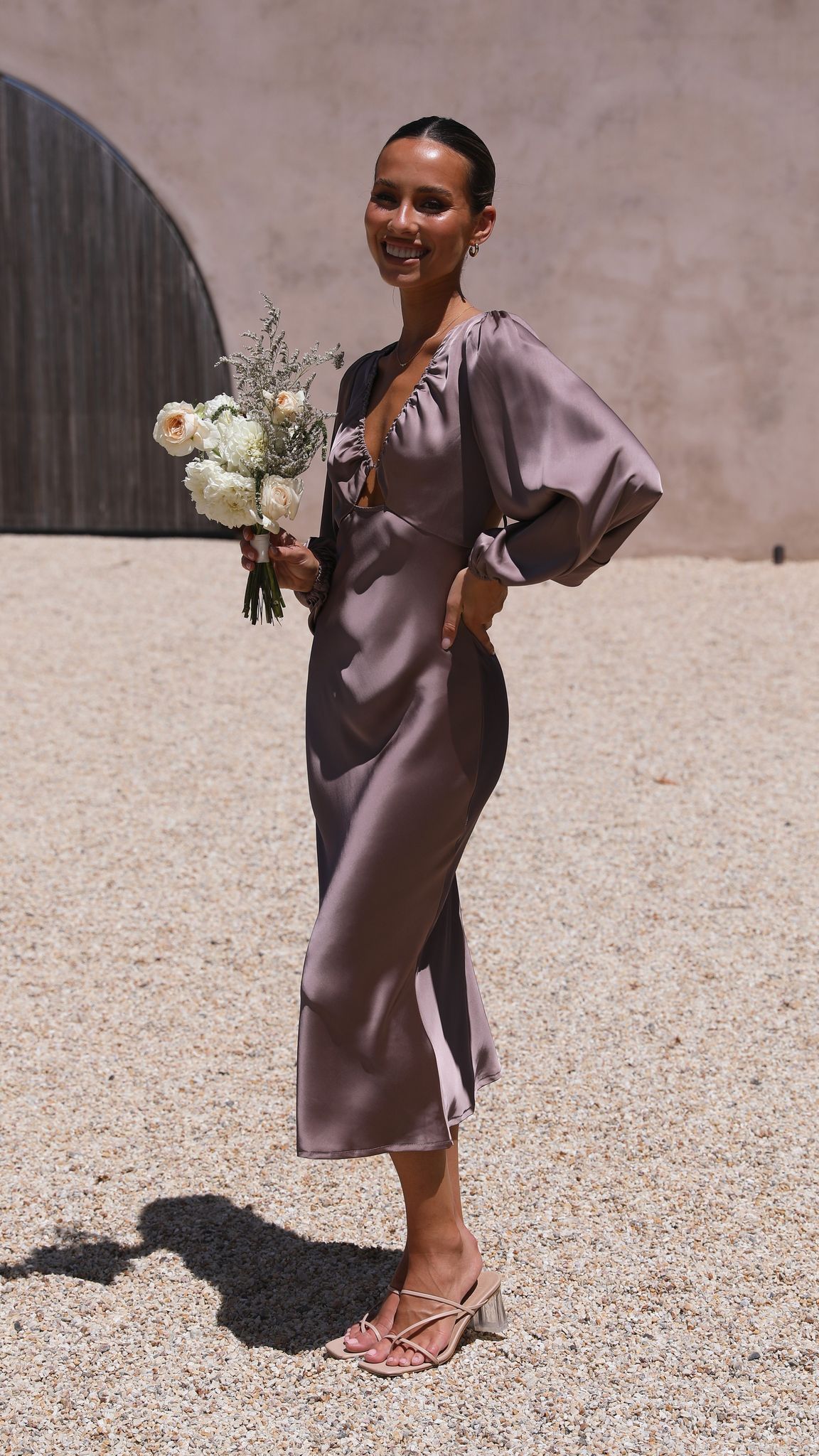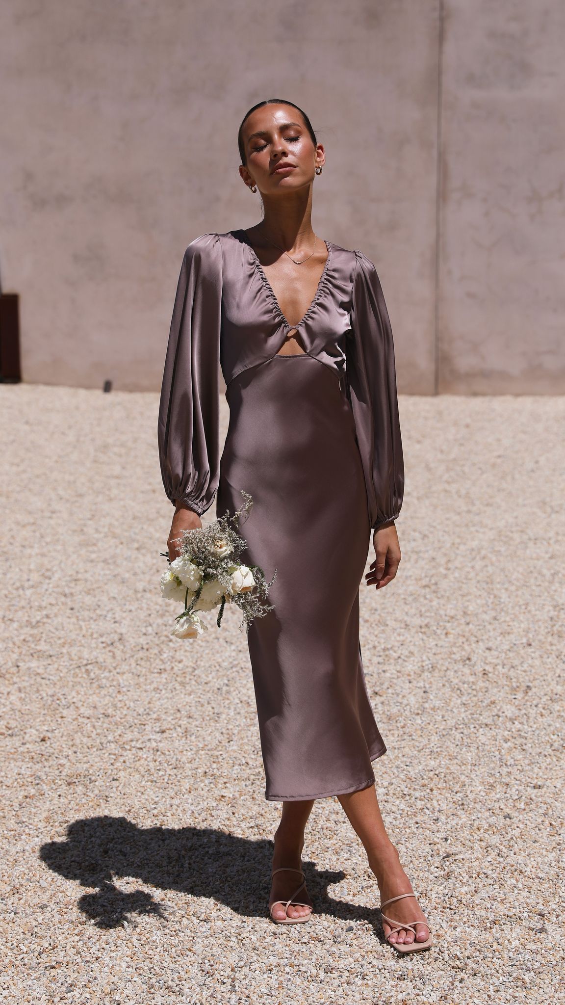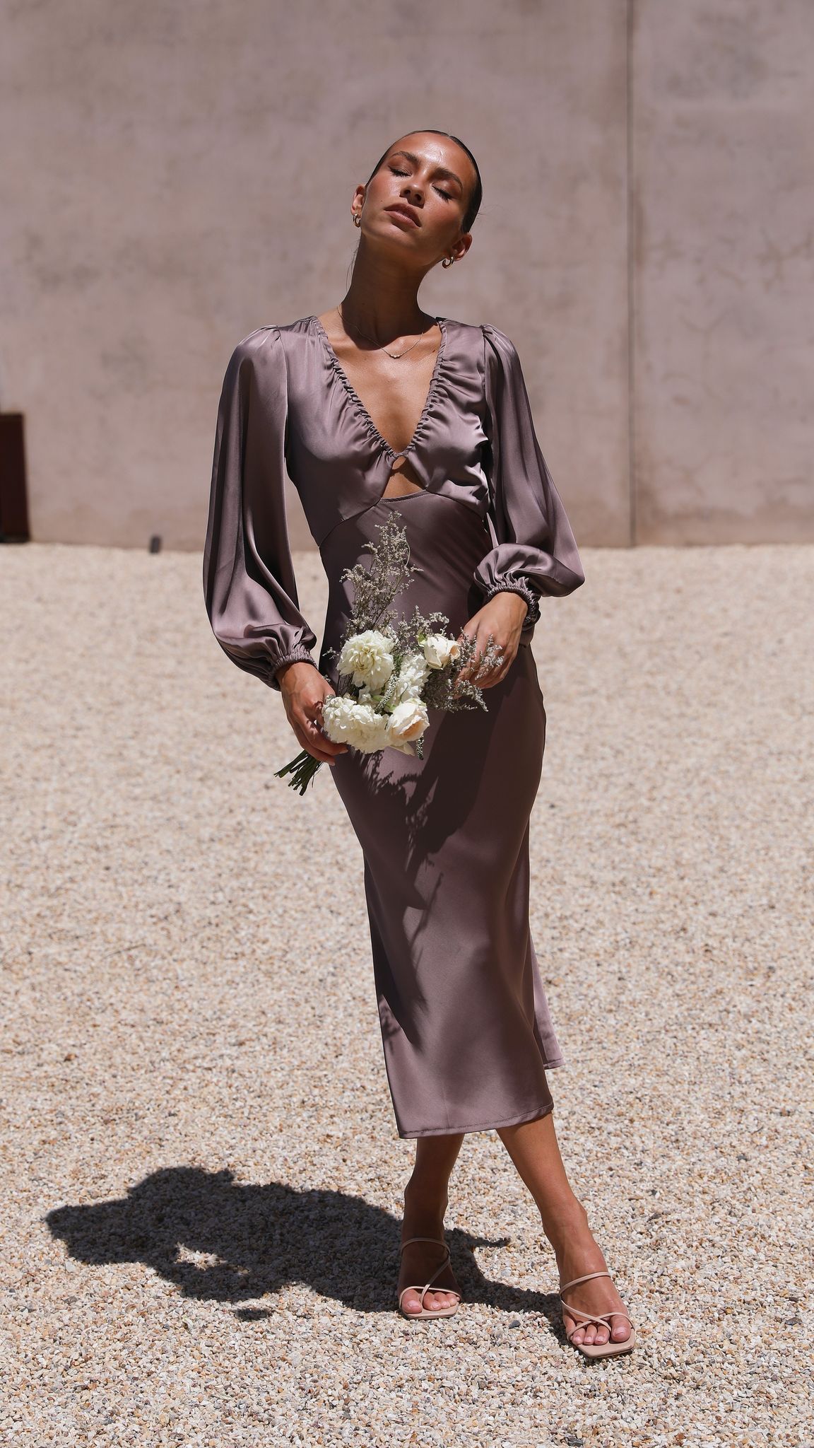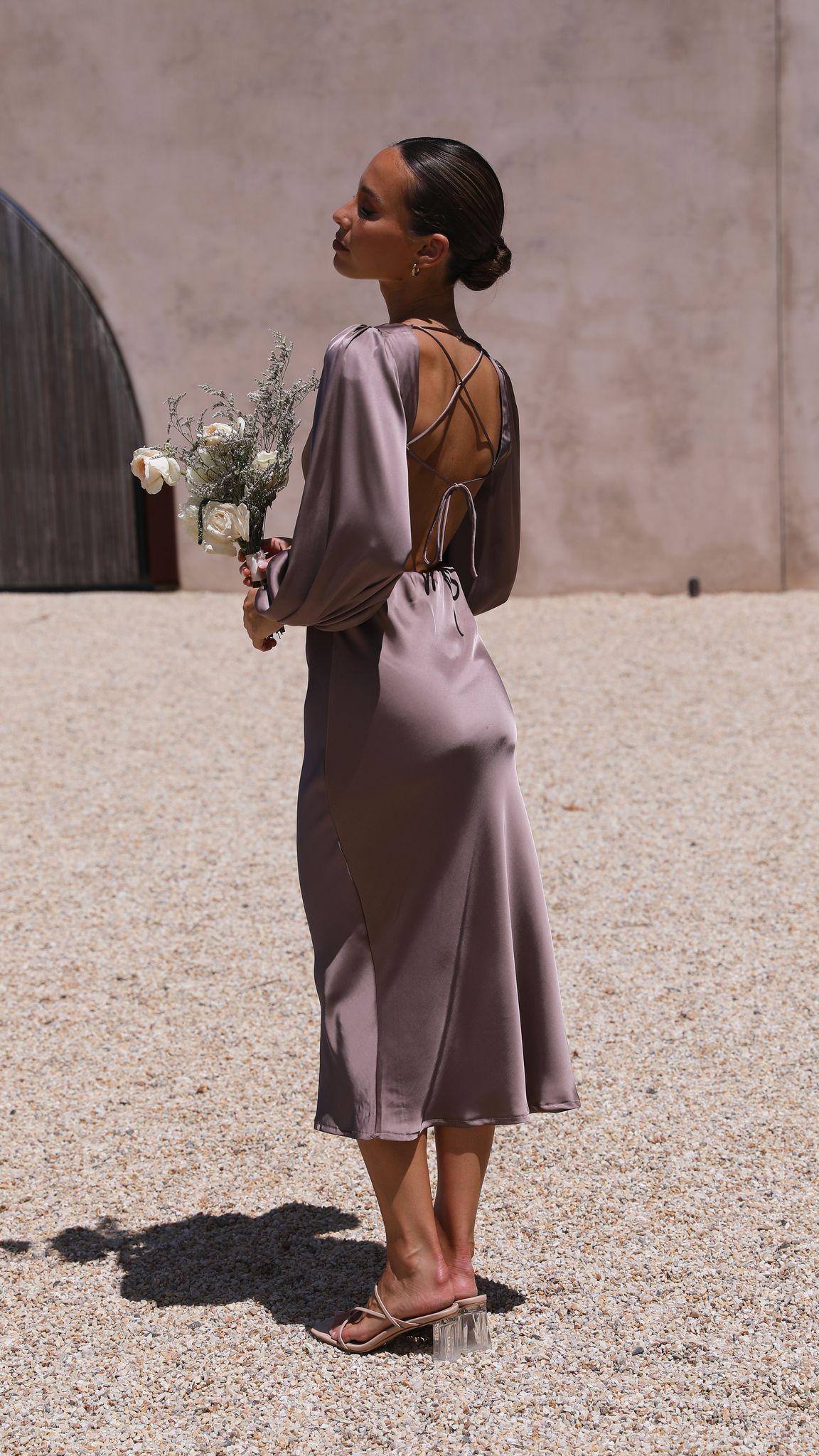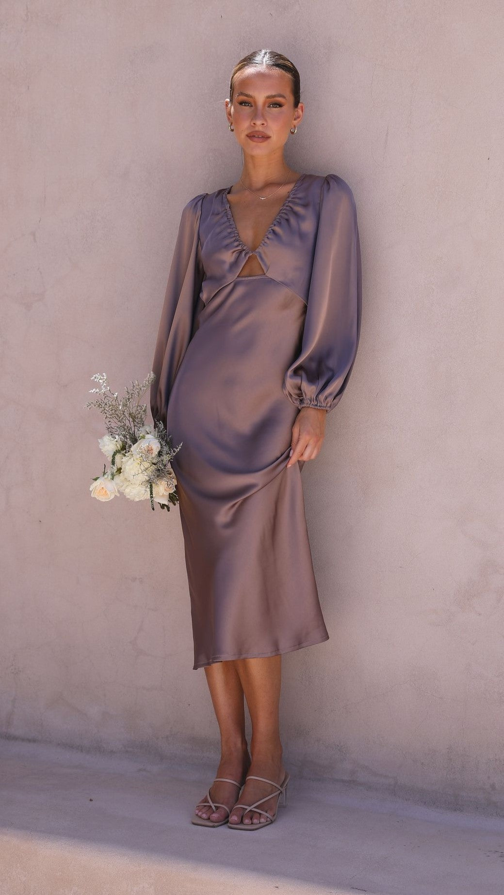 Feel super classy and elegant in our Cleo Midi Dress. This gorgeous number features full length sleeves, v neckline with small cut out on bust and a stunning open back design with cross over straps. This dress pairs perfectly with clear heels and gold jewels to achieve that perfected evening look!