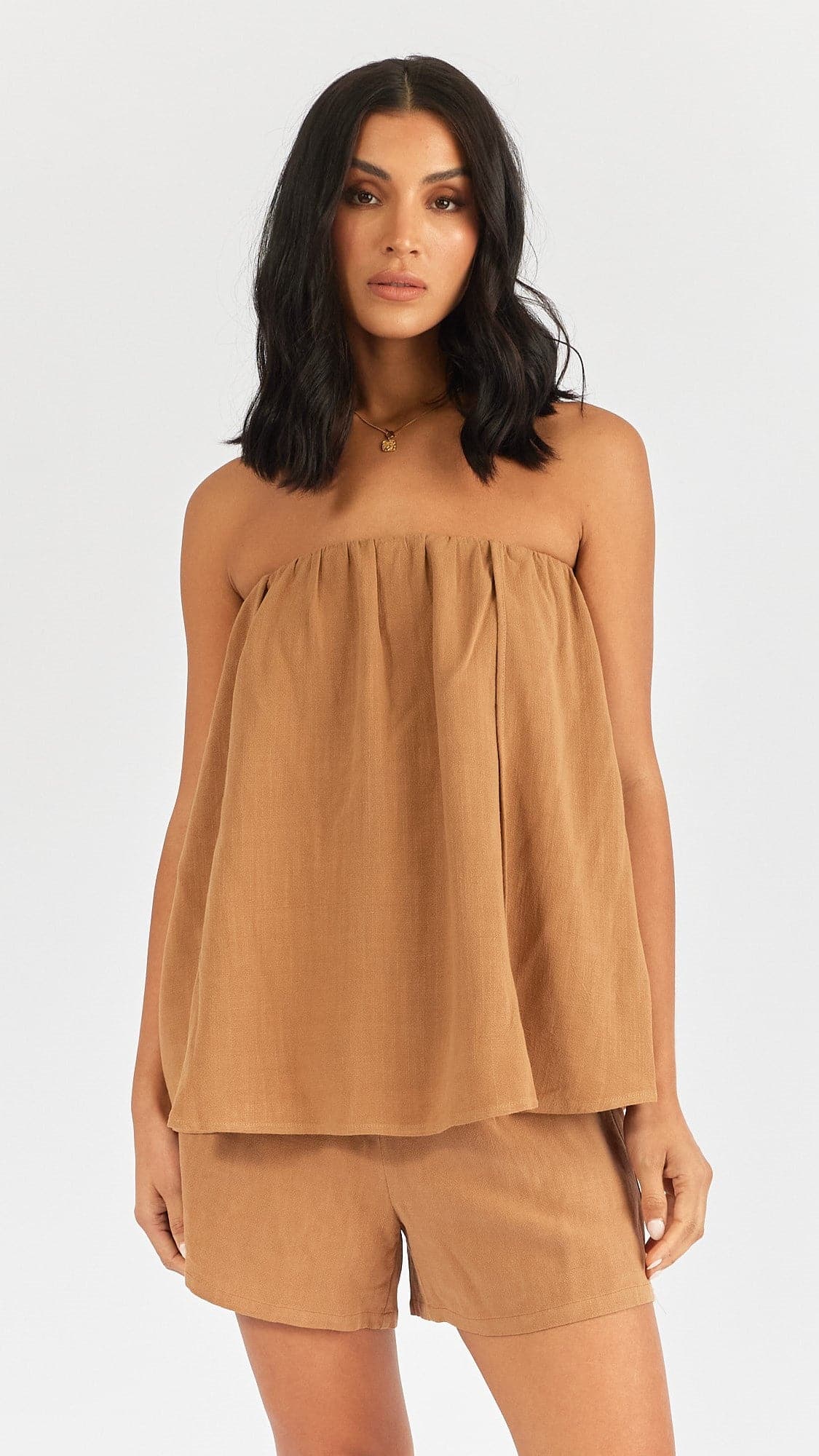 Get the look! Styled here with the matching Averie Shorts - Walnut and Pennie Heel - Ivory