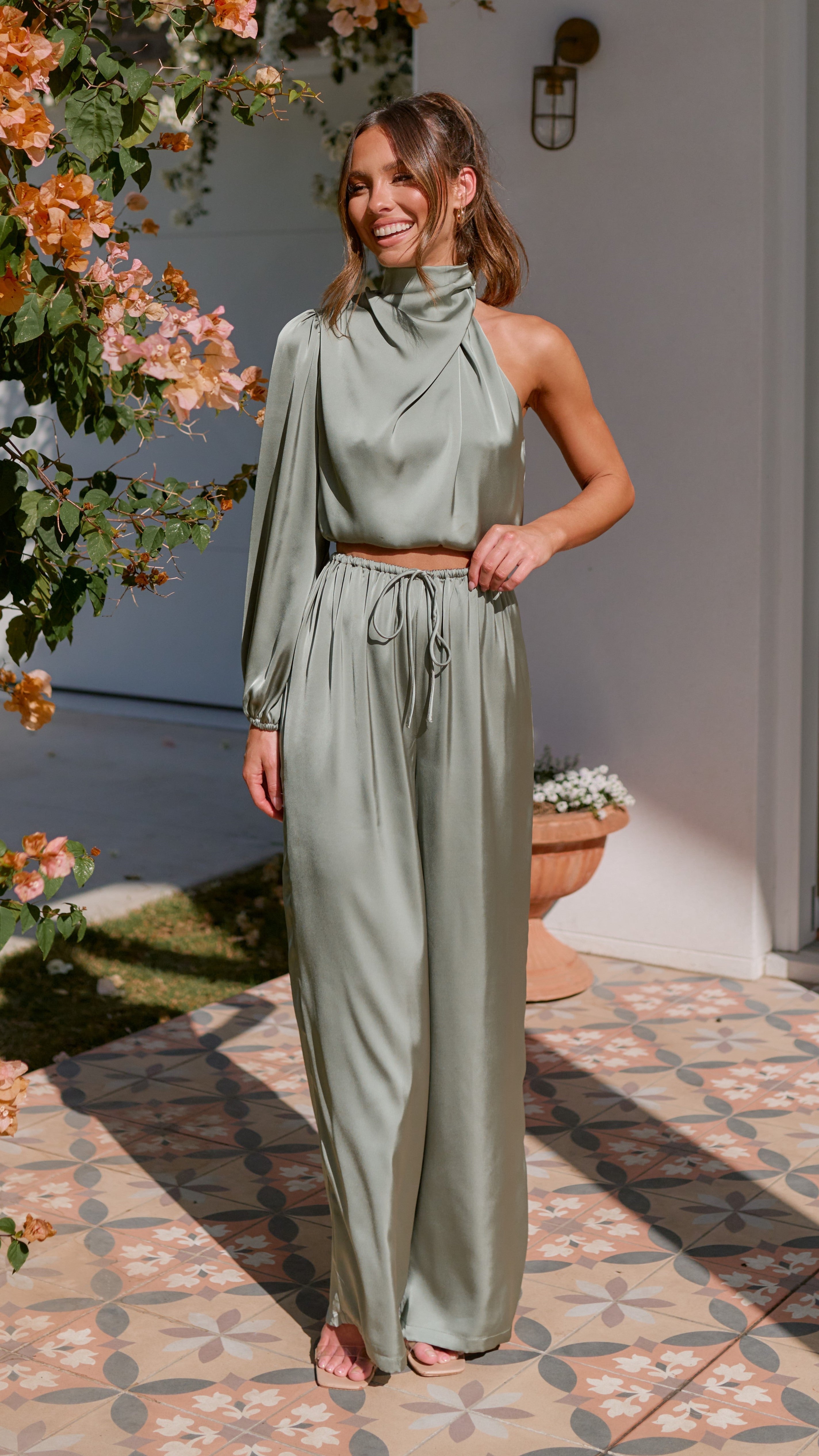 Get the look Aena Heel Nude/Clear, Zuri Pants - Green