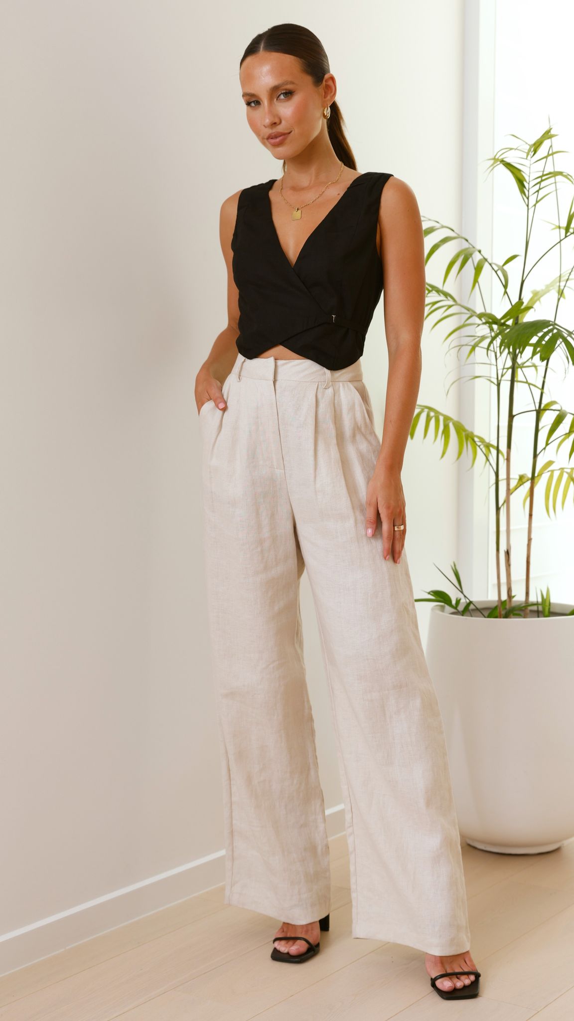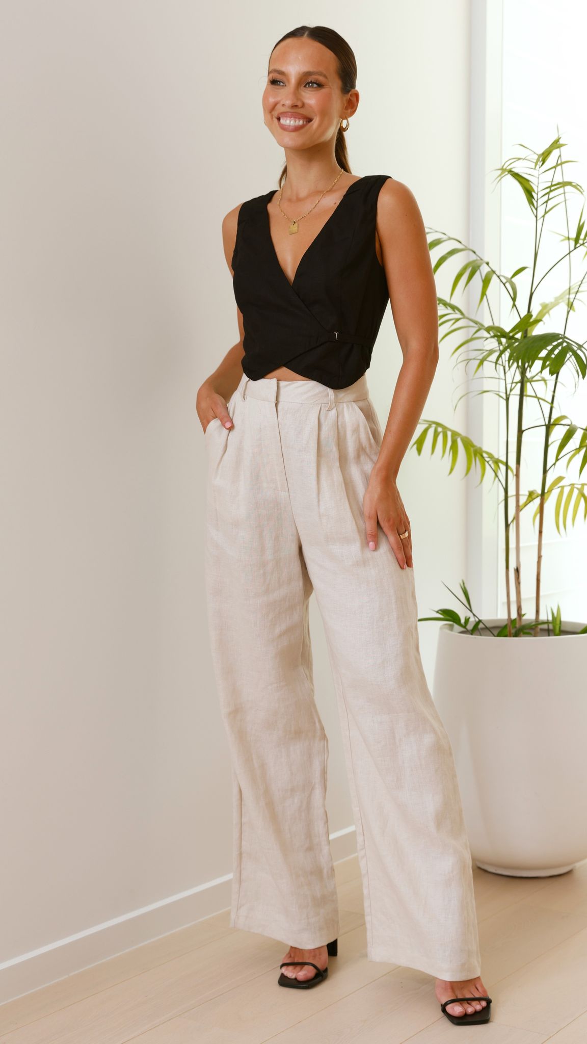 Get the look Tillie Pants - Oatmeal & Chantel Heel - Black