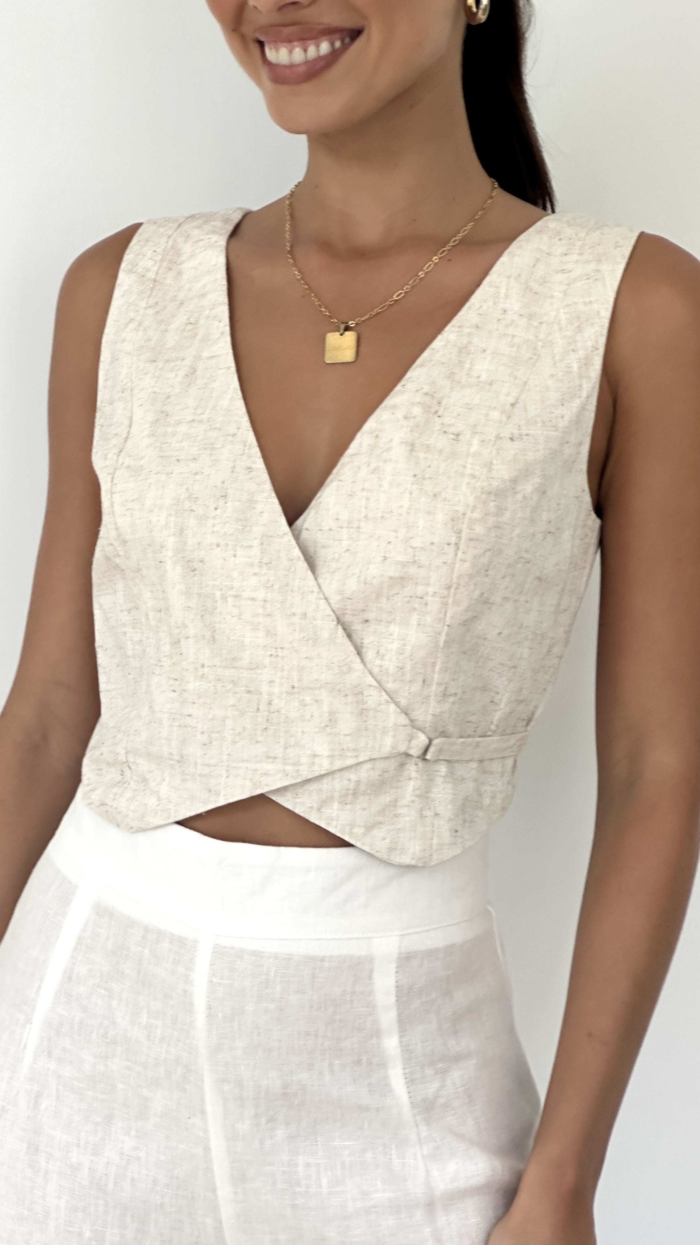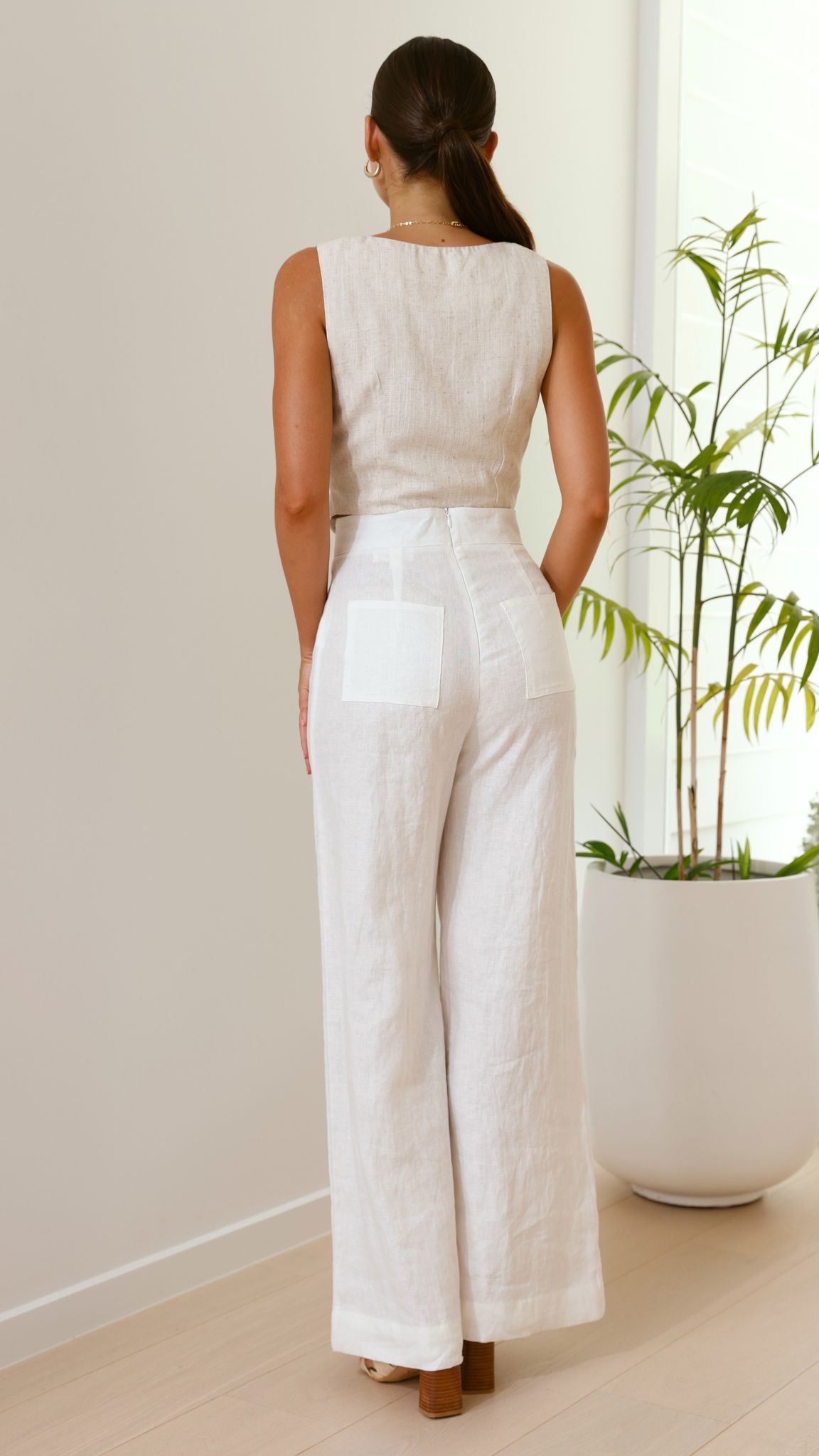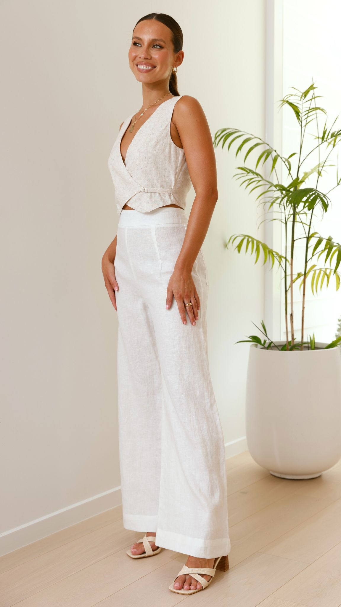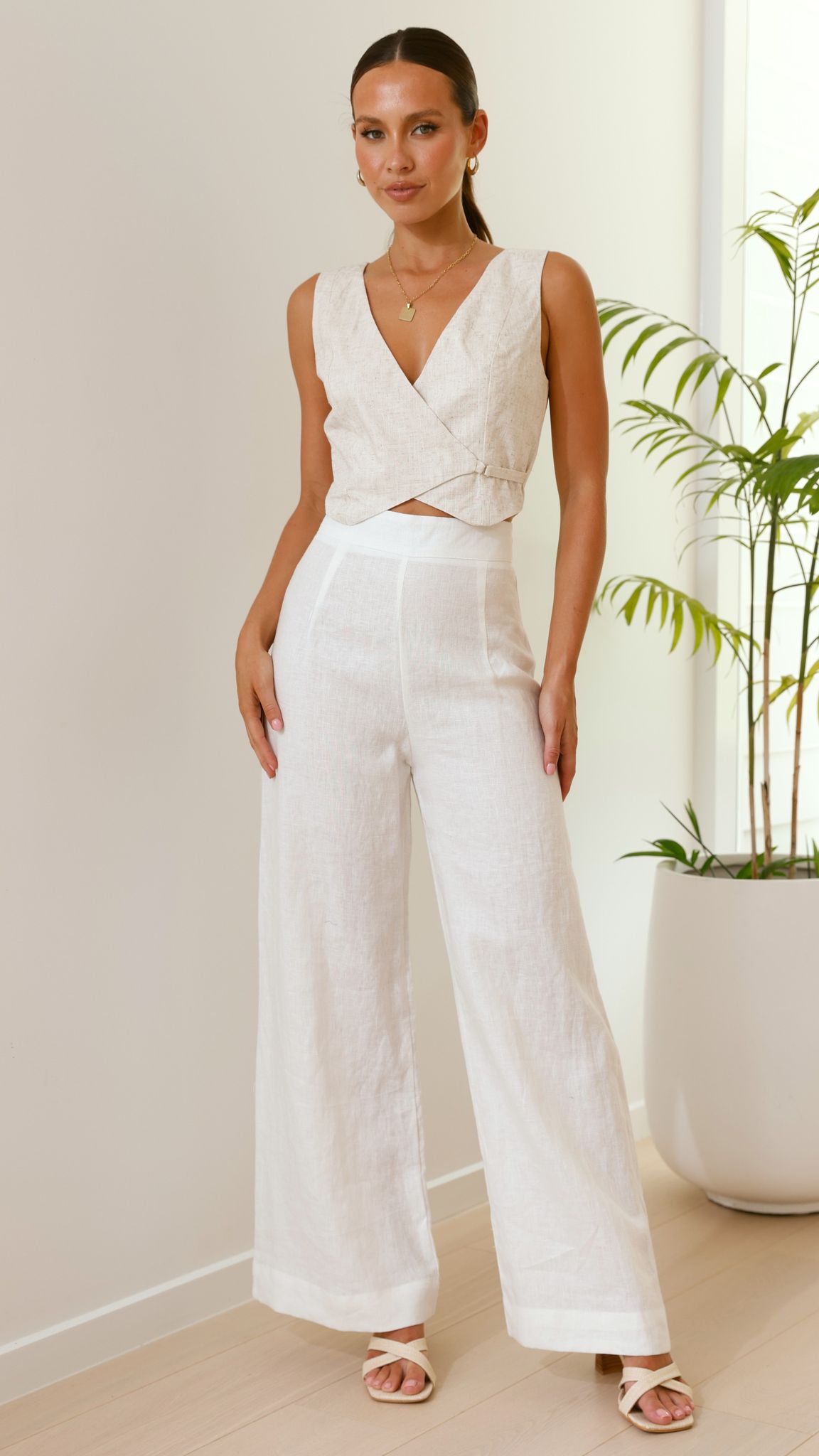 Get the look Ukko Heel - Camel Rafia & Karah Pants - White