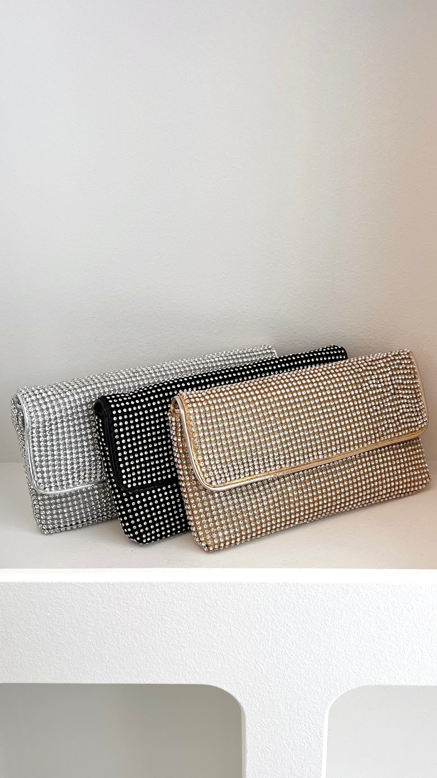 Add a glamorous addition to your look with our chic Malia Foldover Diamante Clutch, perfect for your next event.