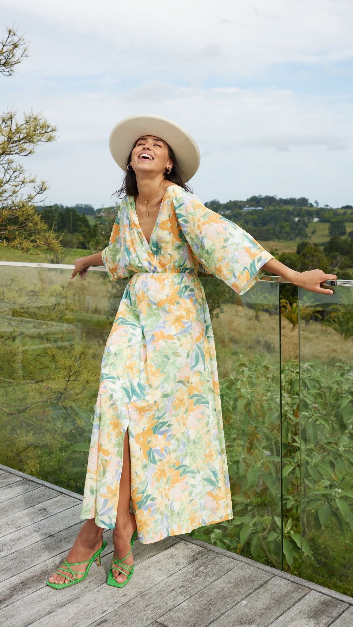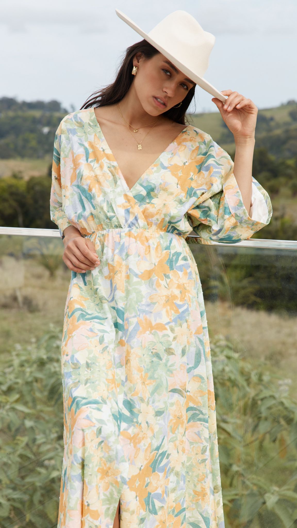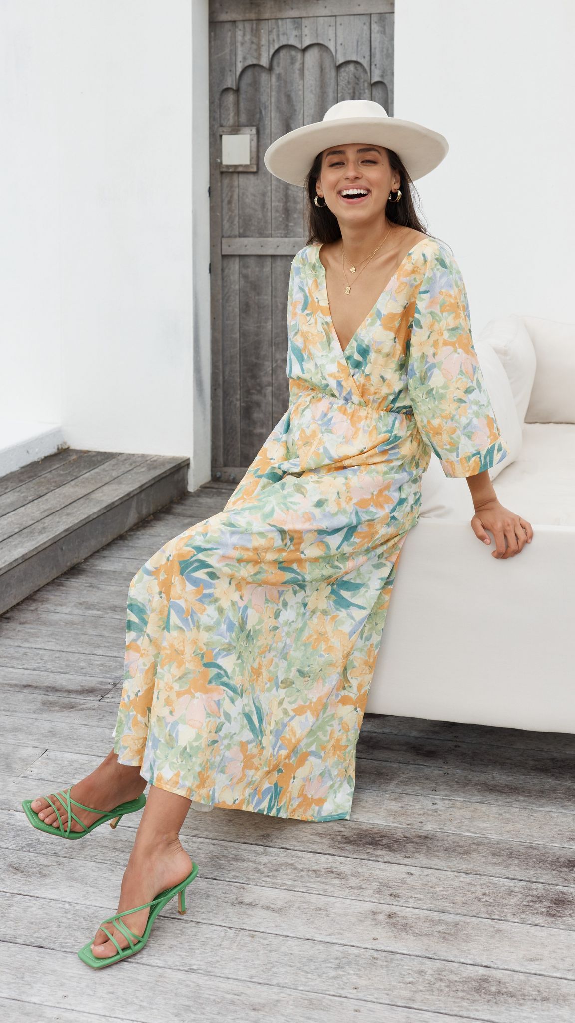 Our Marcy Maxi Dress in Wildflower Print is a timeless floral style which flows from the shoulders. Based on a best-selling silhouette, the Marcy features grecian-like draping which compliments expecting bumps and flatters all bodies. Perfect for dressing from day to night.