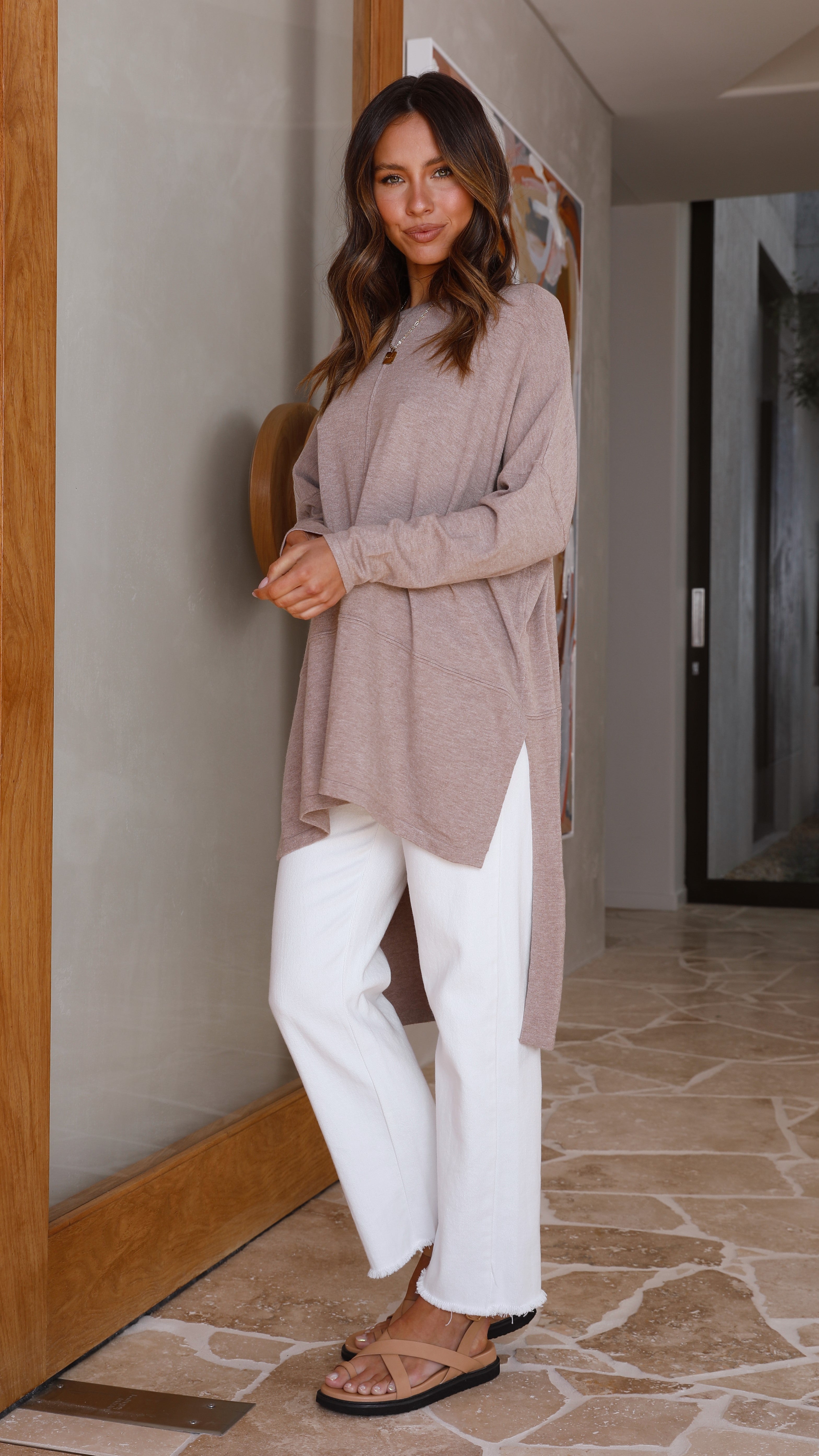 Get the look Zinnia Sandals - Desert and Jaykowa Jeans - White Denim