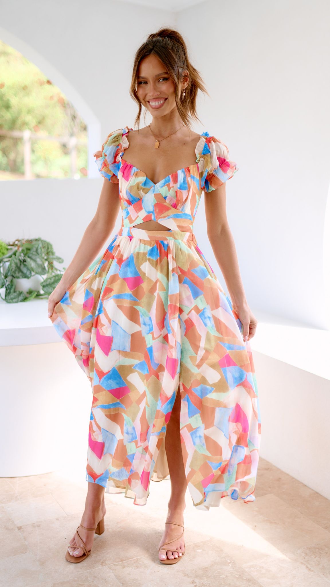 - Small cut out under bust