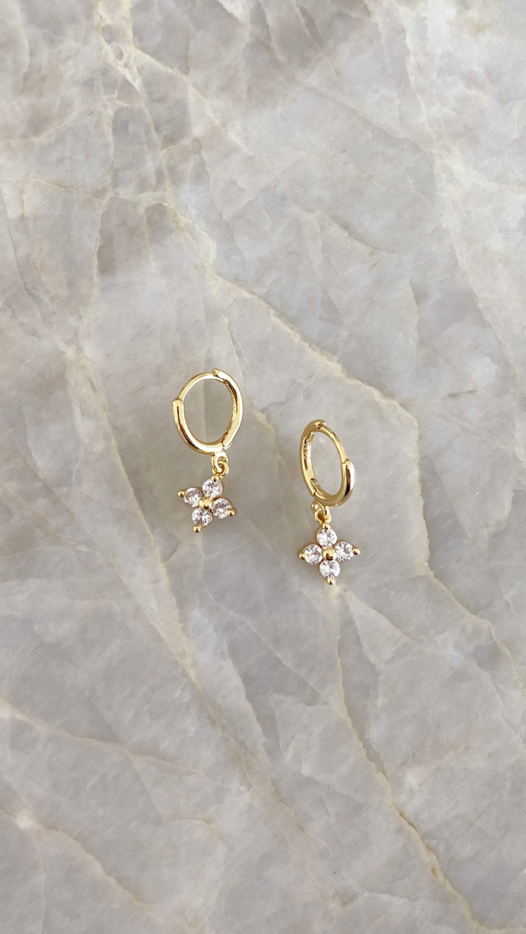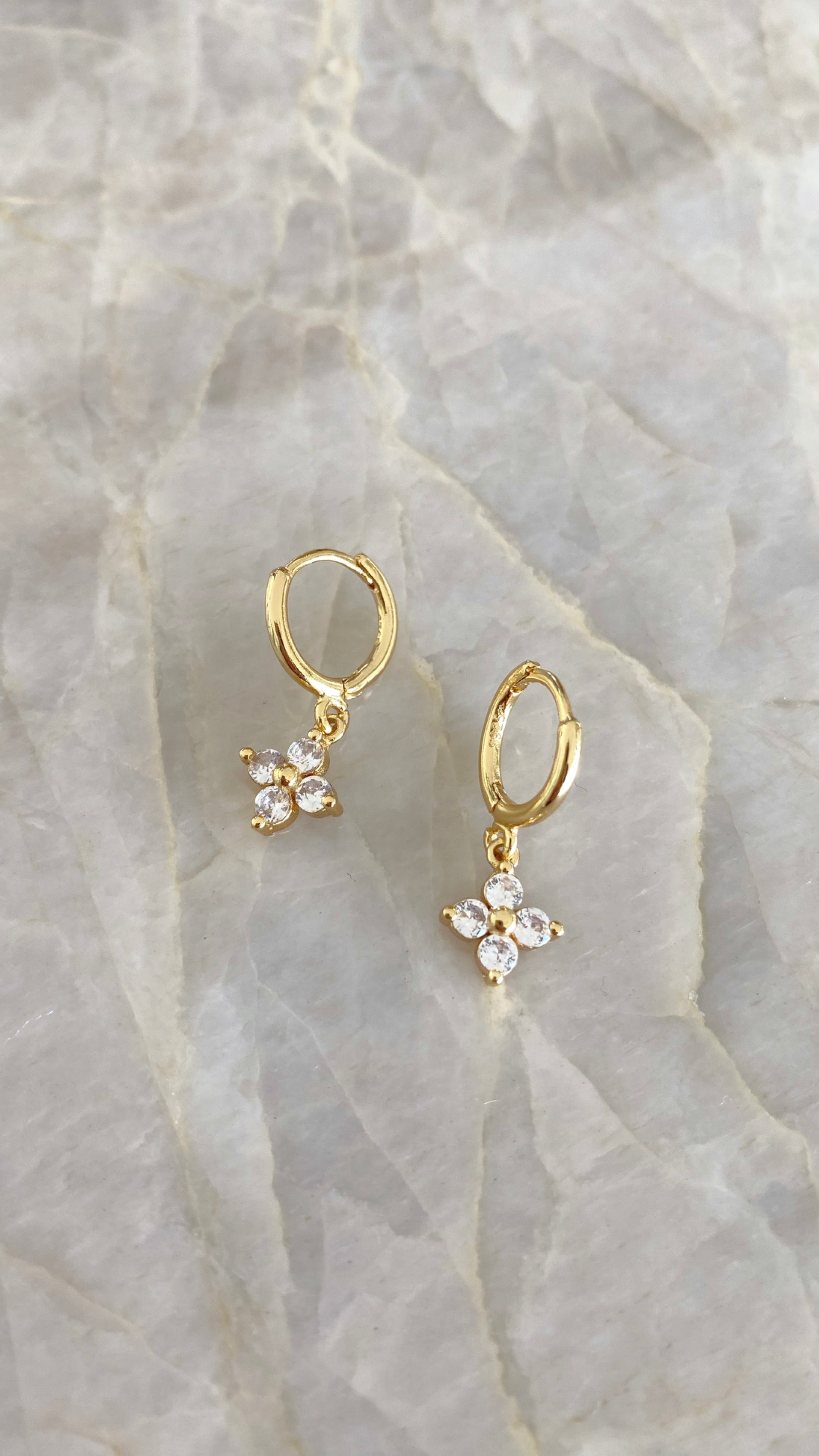The perfect stacking pair! The Miley Sleepers are gold plated and feature a mini huggie hoop with drop gemstone detailing.