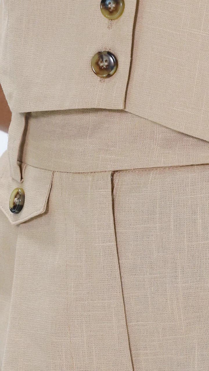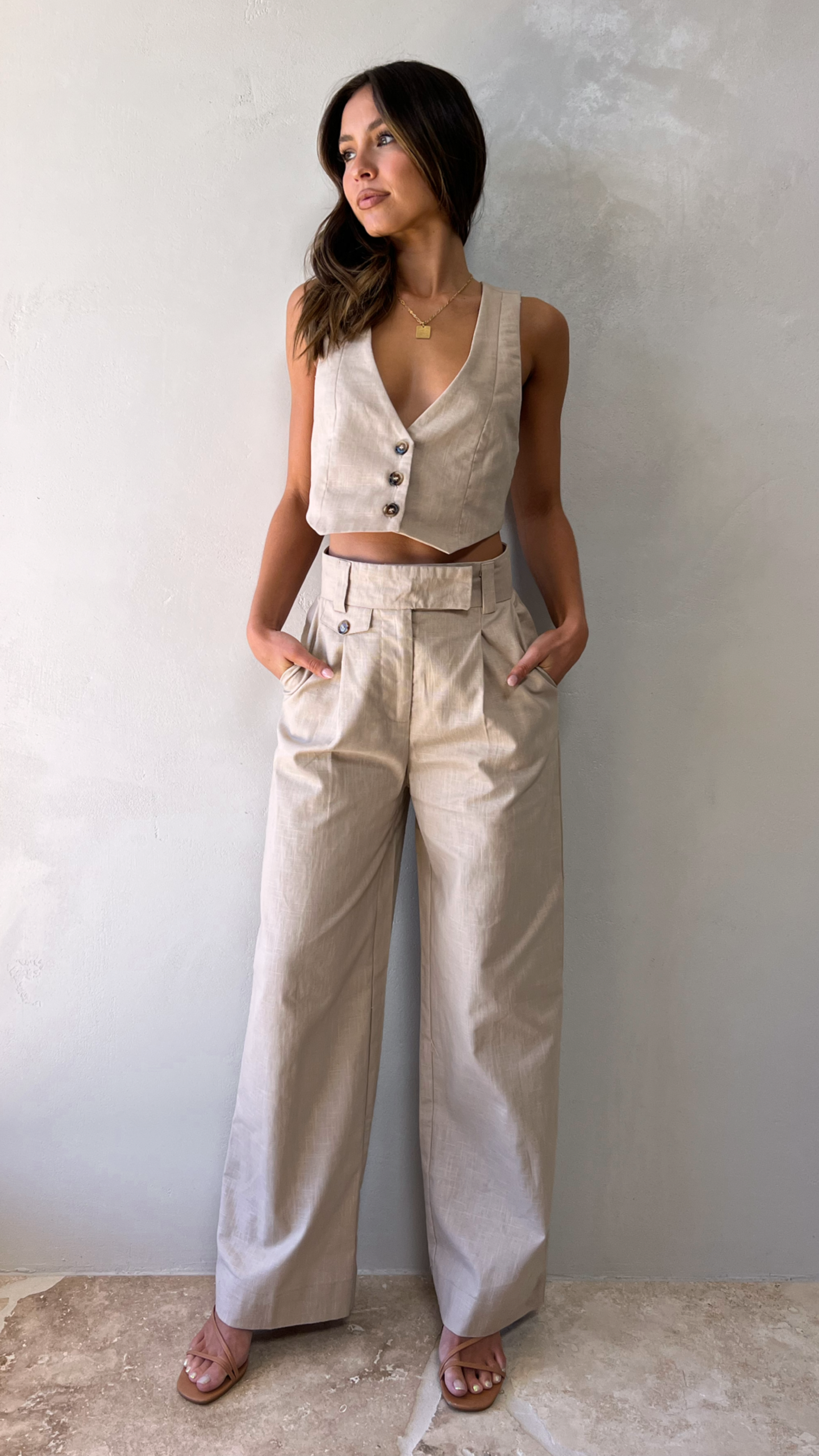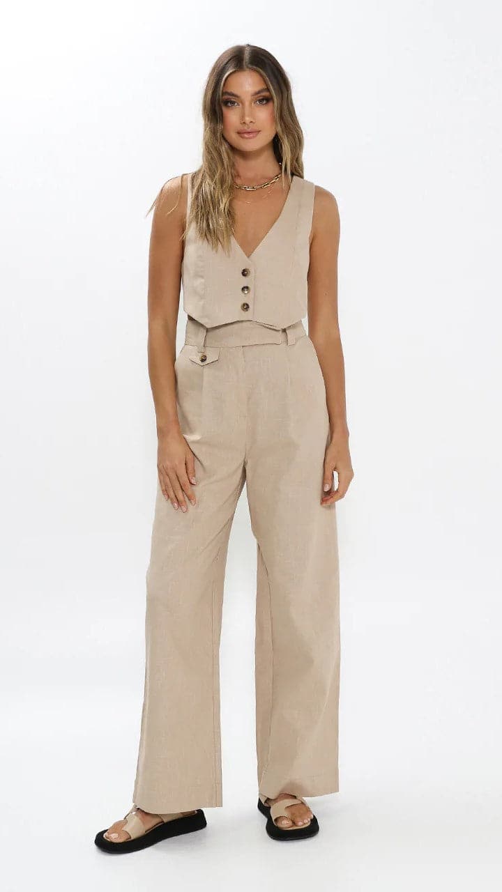 Get the look Yazmin Heel - Sugar Brown and Eve vest - Sand