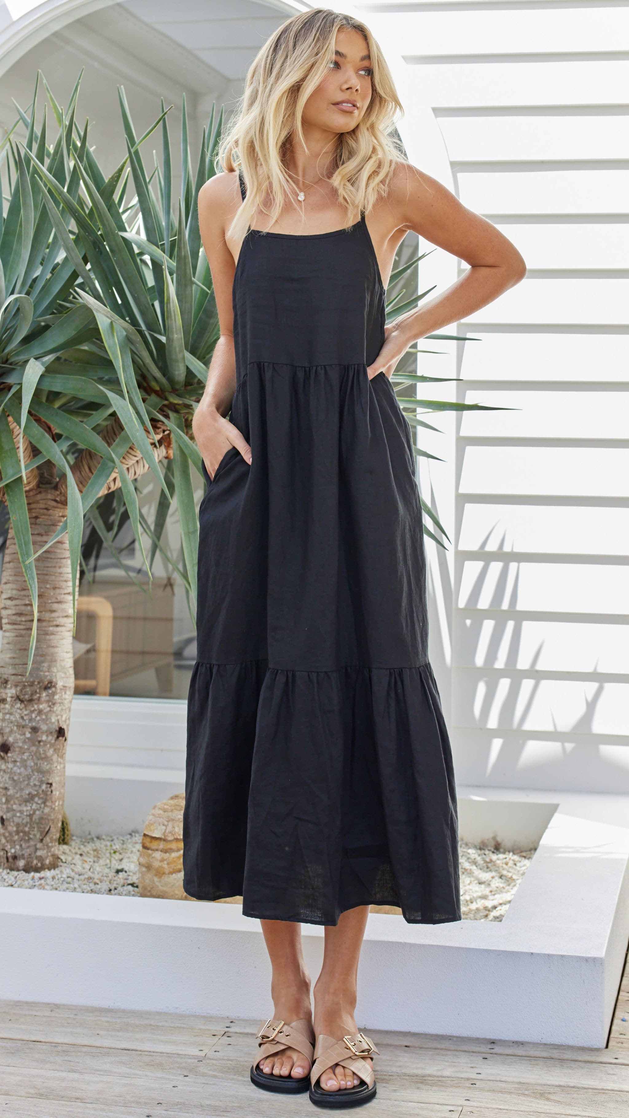 The Nico Dress will be your new wardrobe staple this season. Made from linen material, this maxi is a a relaxed fit and features adjustable straps and side pockets. Can be worn with tan sandals and a straw hat or with a jacket for the ultimate trans-seasonal look.