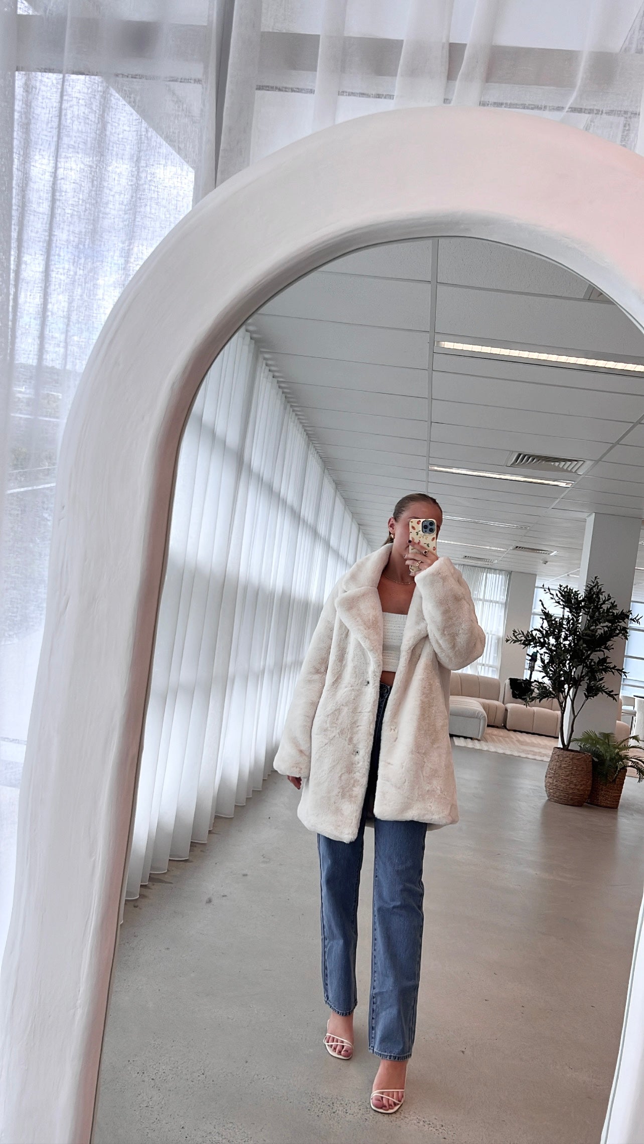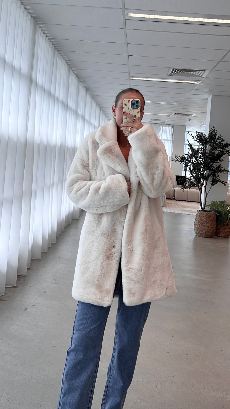 - Oversized fluffy coat