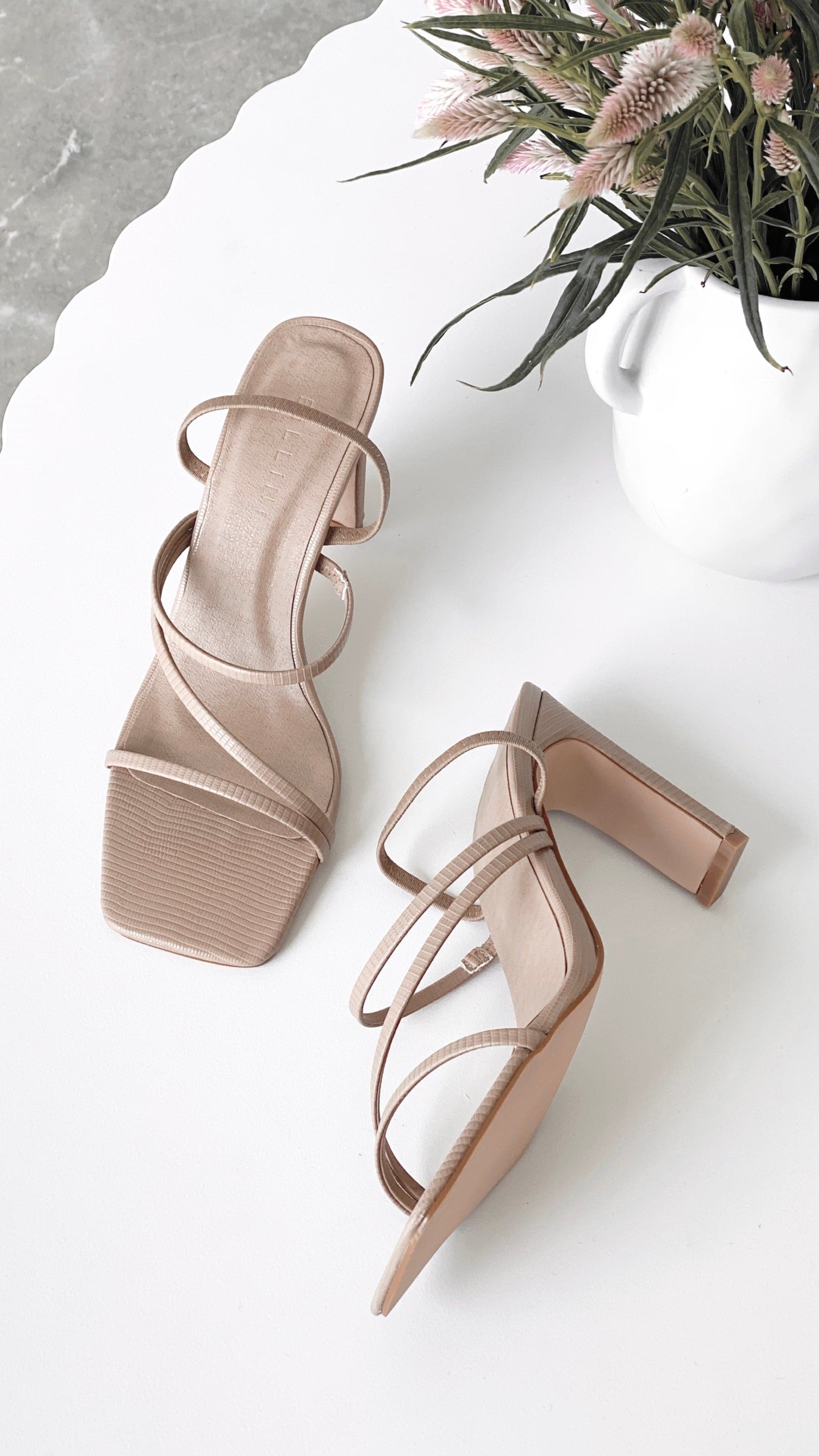 Add a sleek touch to your off-duty outfit with a minimal strappy mule, set on a high yet comfortable shaved block heel.