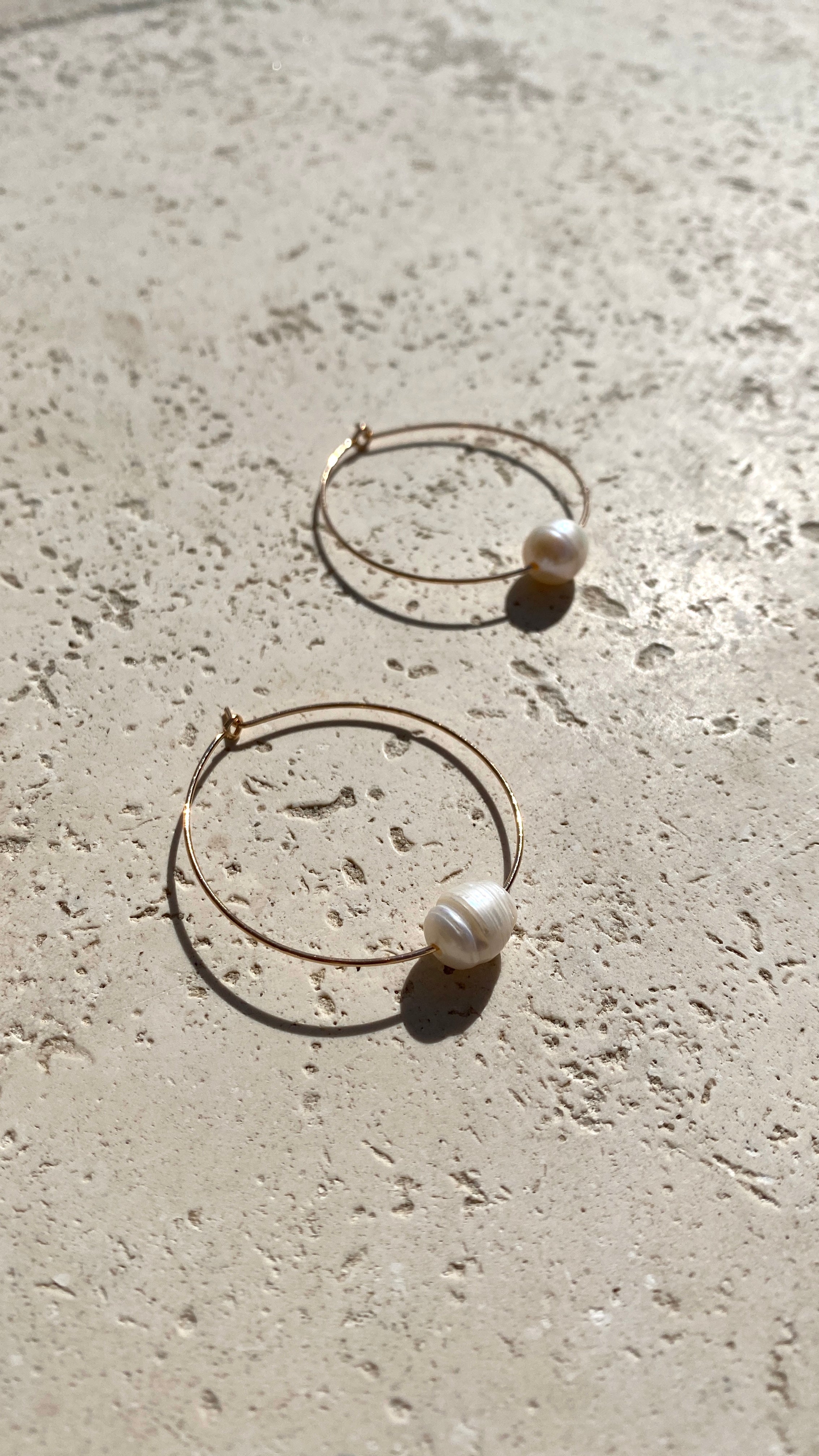 Look effortlessly styled from work to weekend with our Fine Wire Pearl Hoops, perfect for adding a classic touch!