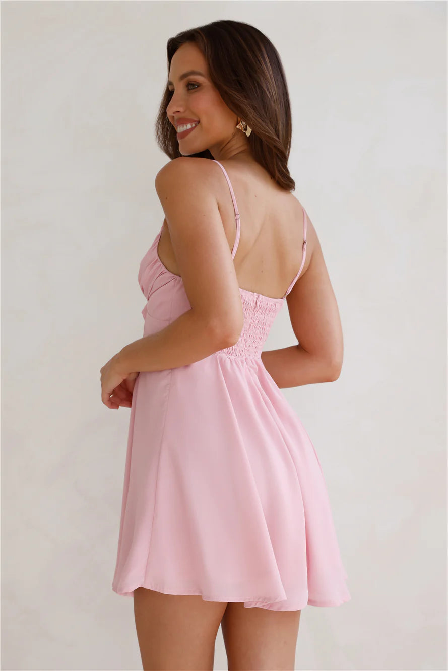 We're in love with the Smile Back At Me Mini Dress. Featuring a gorgeous bow with a frill detail and a flowy skirt. Style with heels and curls for all the attention.