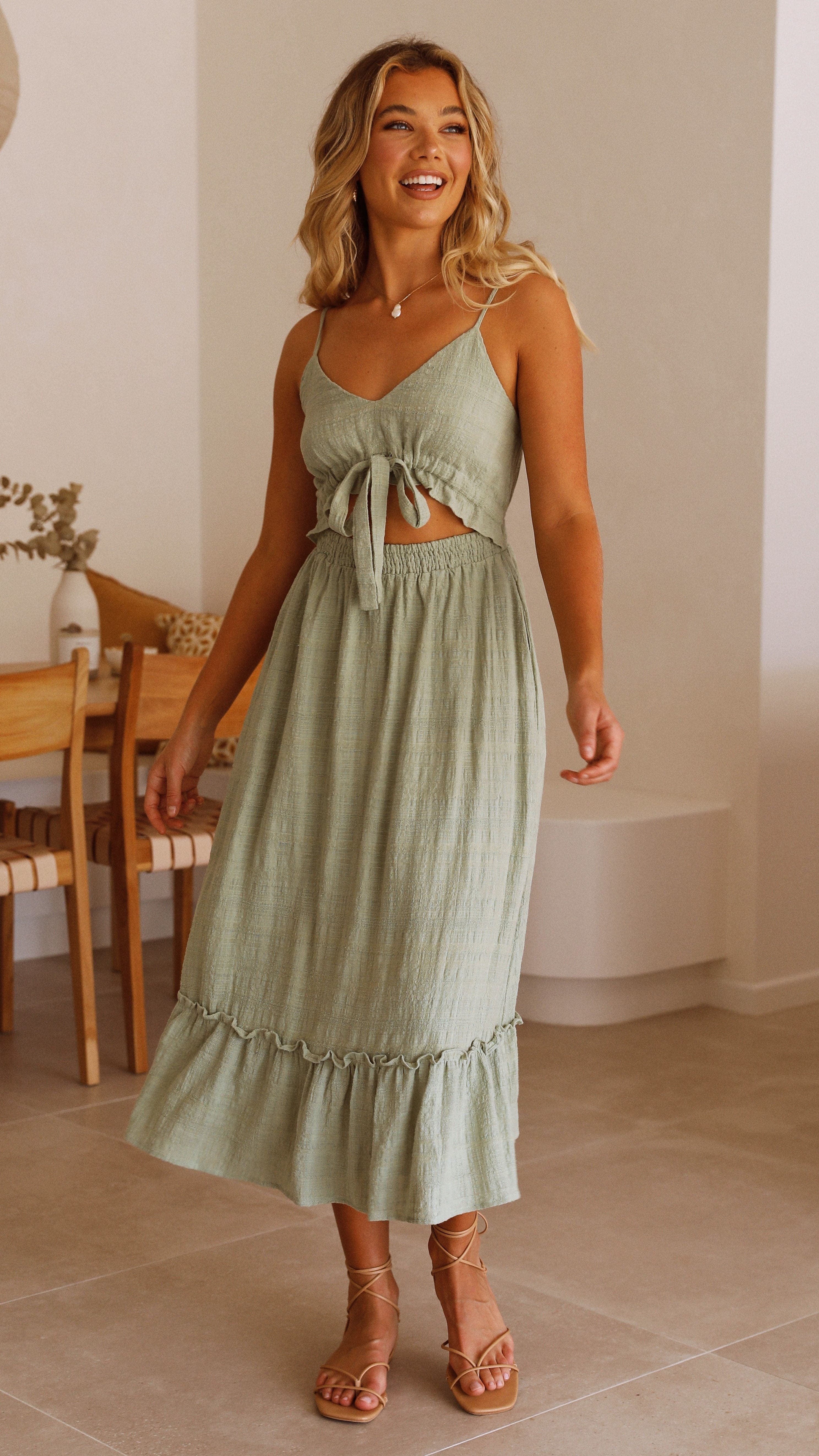 - Adjustable tie feature under bust
