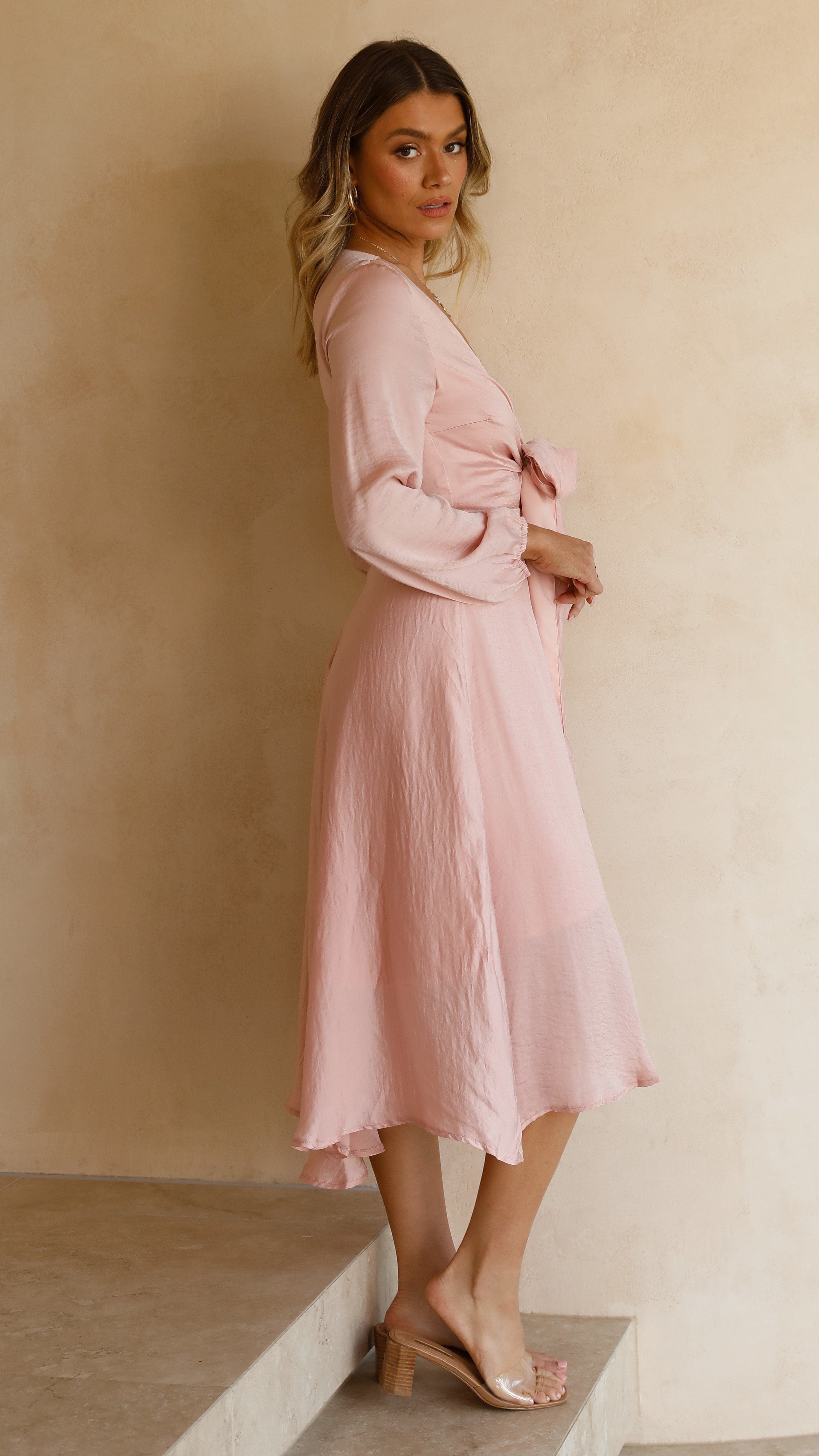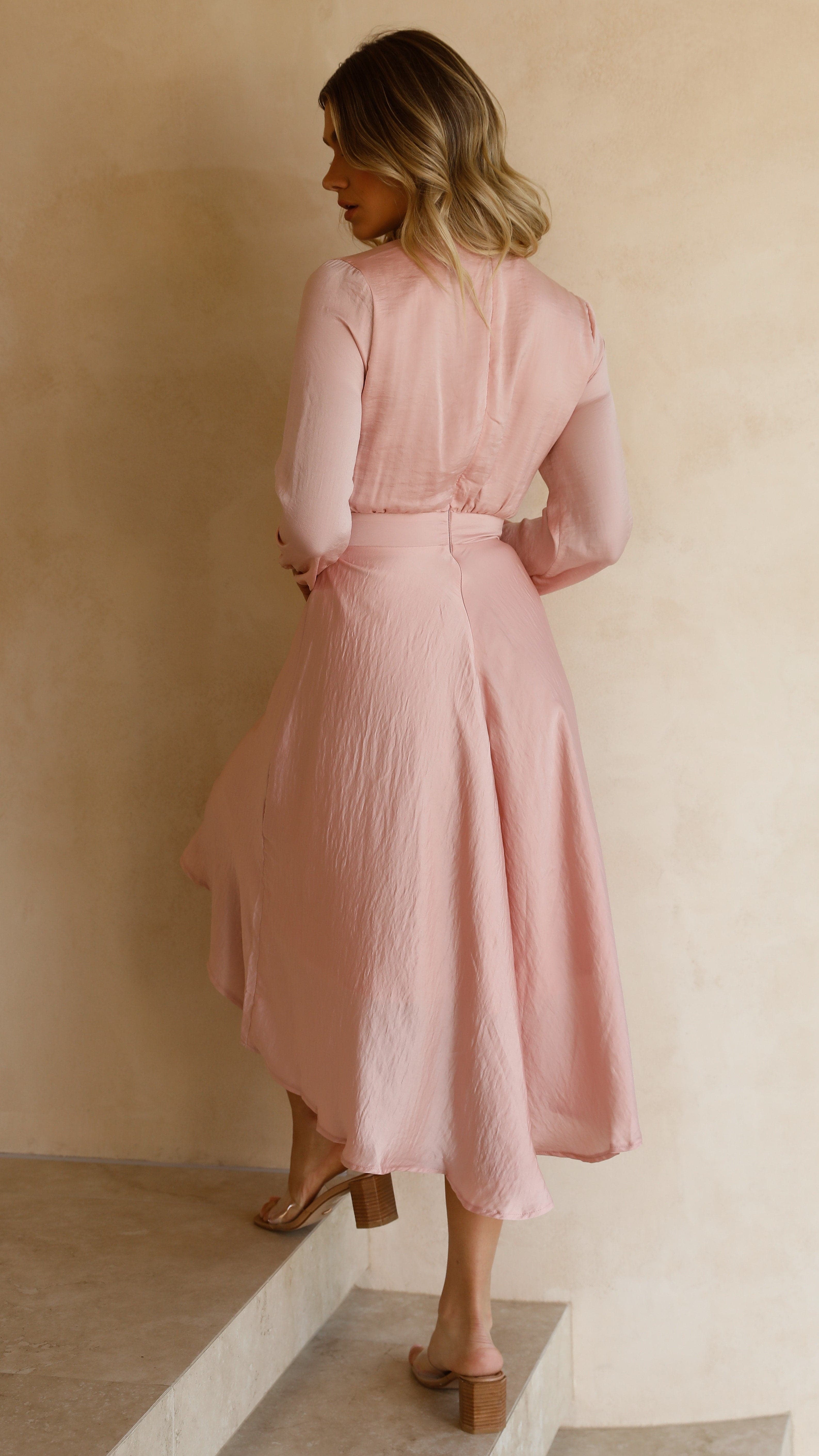 Stand out in our gorgeous satin feel dress, perfect for your next special occasion! This piece is the epitome of femininity with it's flowy high low skirt, tight waistband to cinch in the waist and 2 way adjustable front tie at bust. Ultra flattering and made for all shapes and sizes, this dress is a customer favourite for bridesmaids and we can see why!