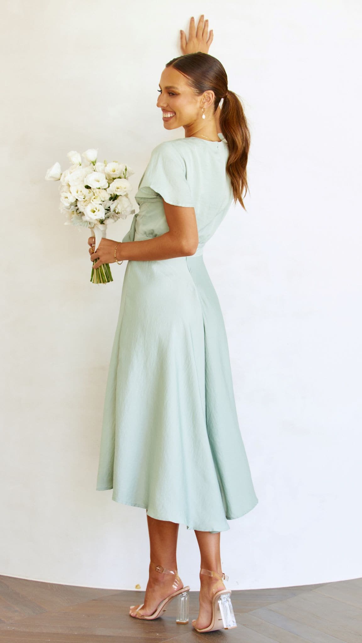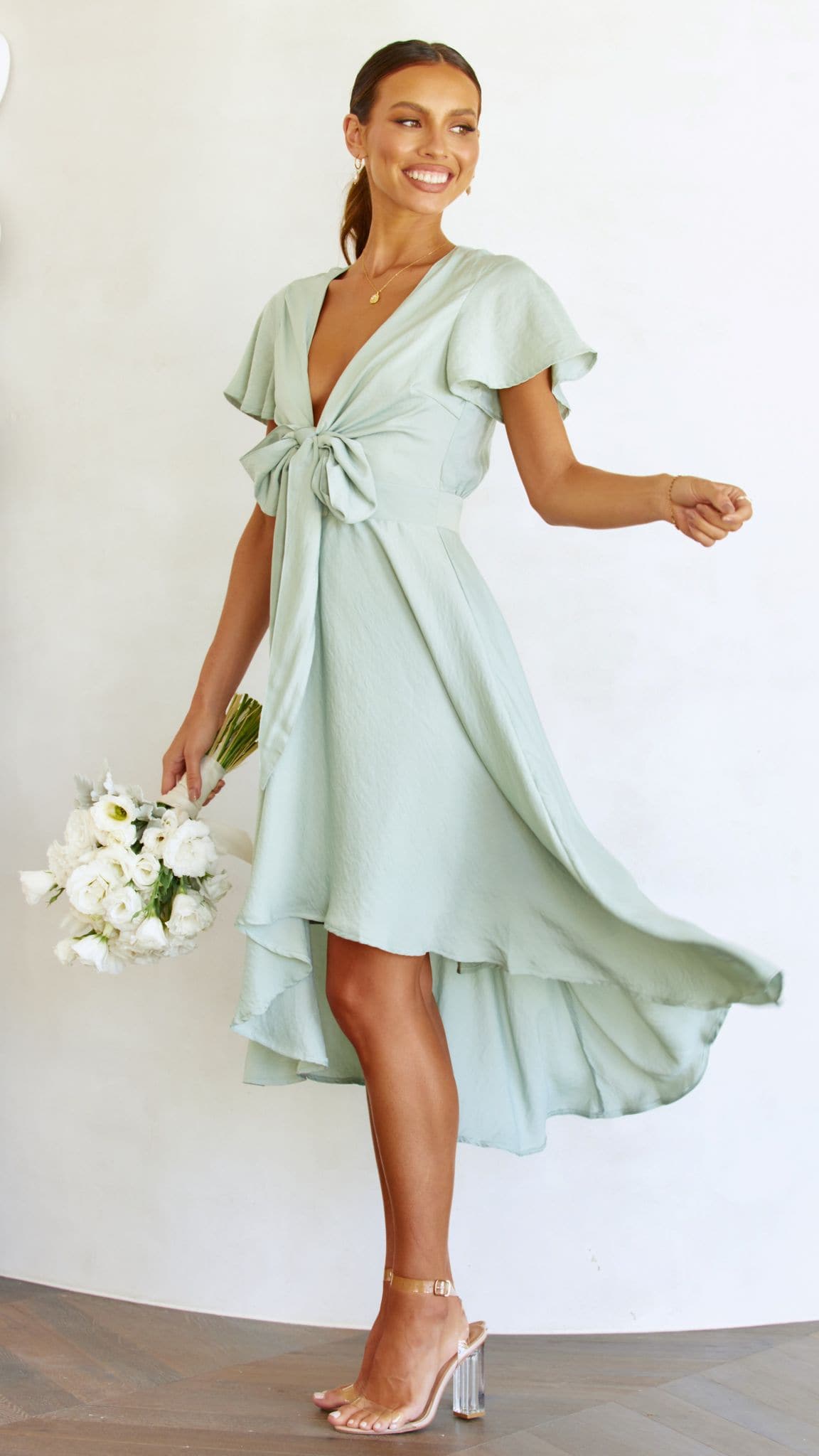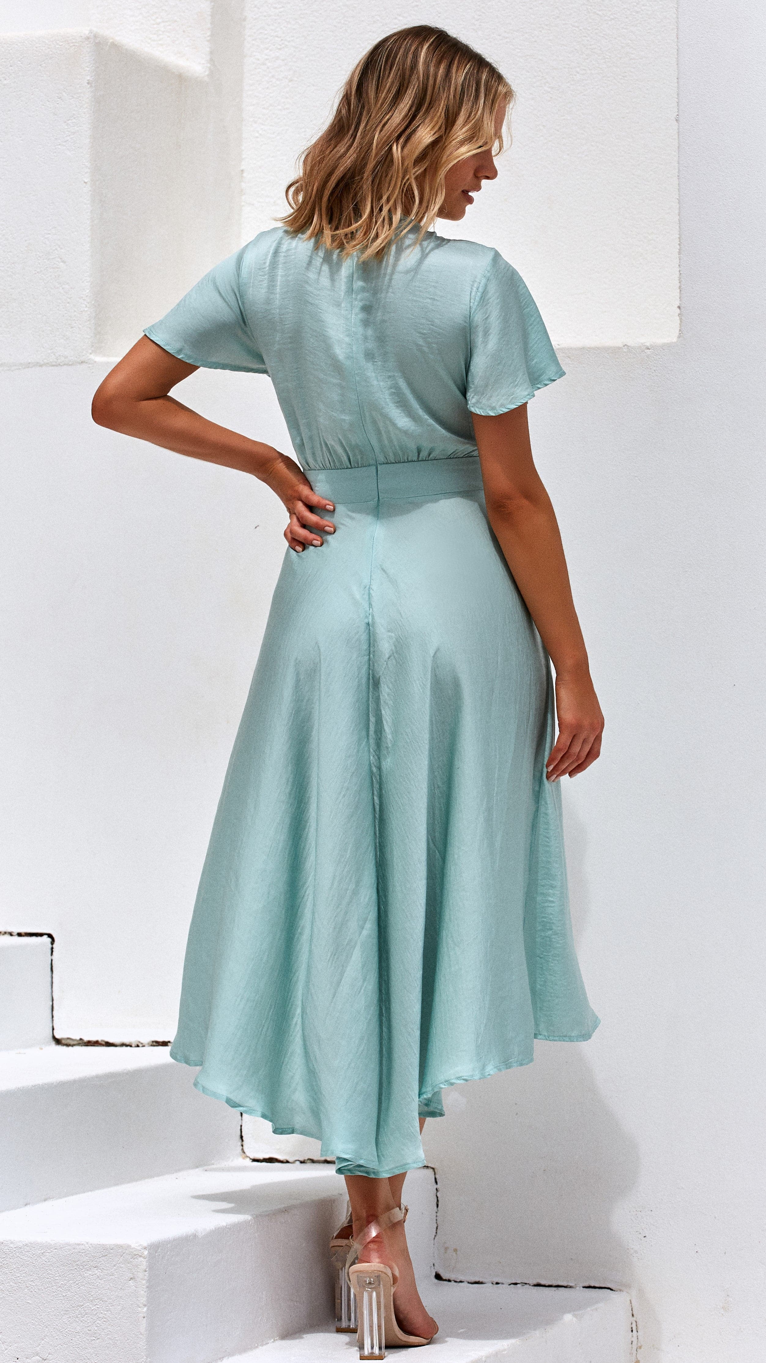 Our Sunny Daze Dress is a must have occasion piece, perfect for that upcoming party or wedding! This dress features butterfly sleeves, a soft satin feel and high low flowy skirt with a tight waistband. This piece will be your go to dress for impressing at any event, we suggest pairing with our Lucy Heels to finish the look.