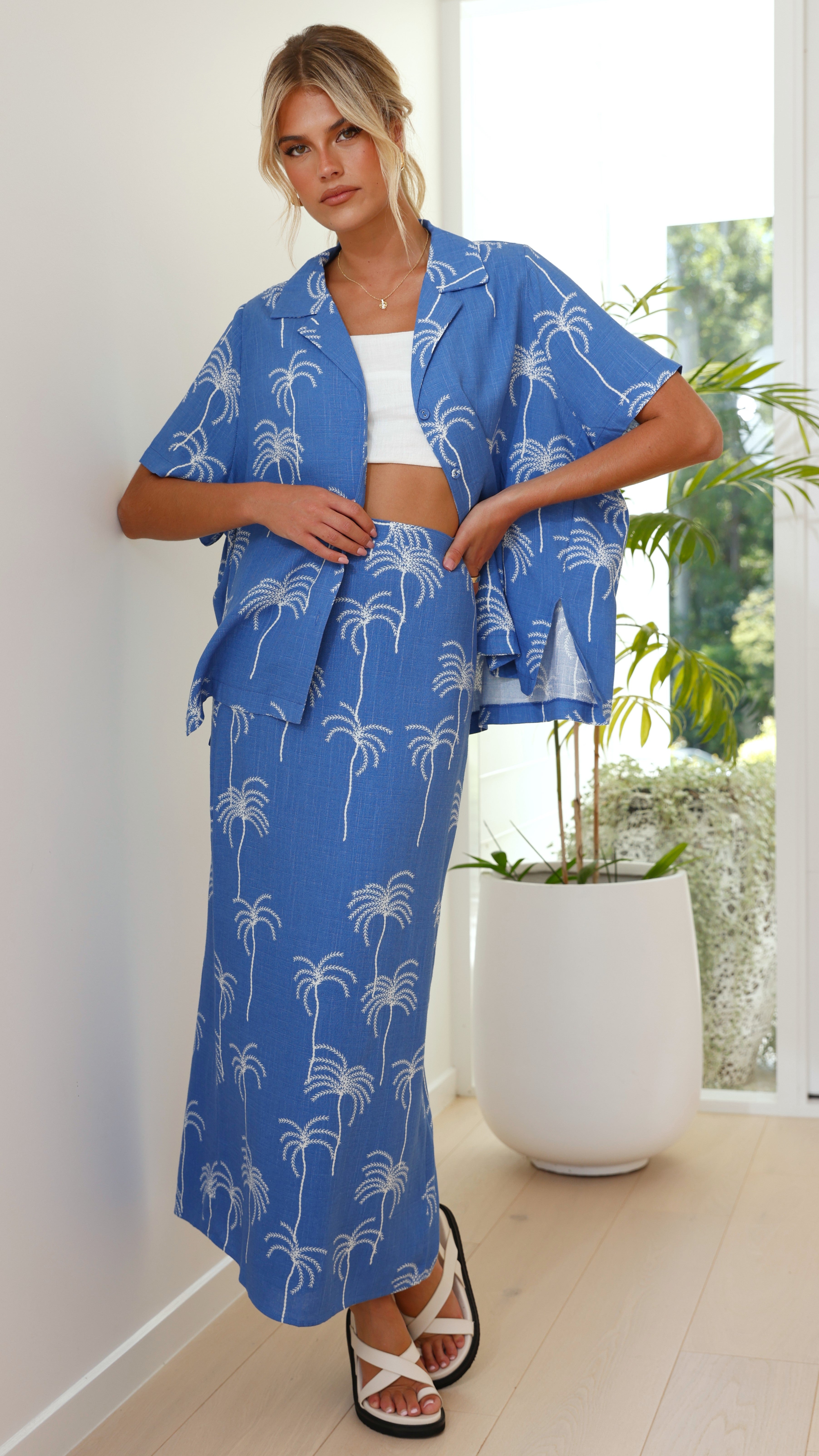 Get the look! Beila Crop Top - Blue Palm & Zinnia Sandal - Bone