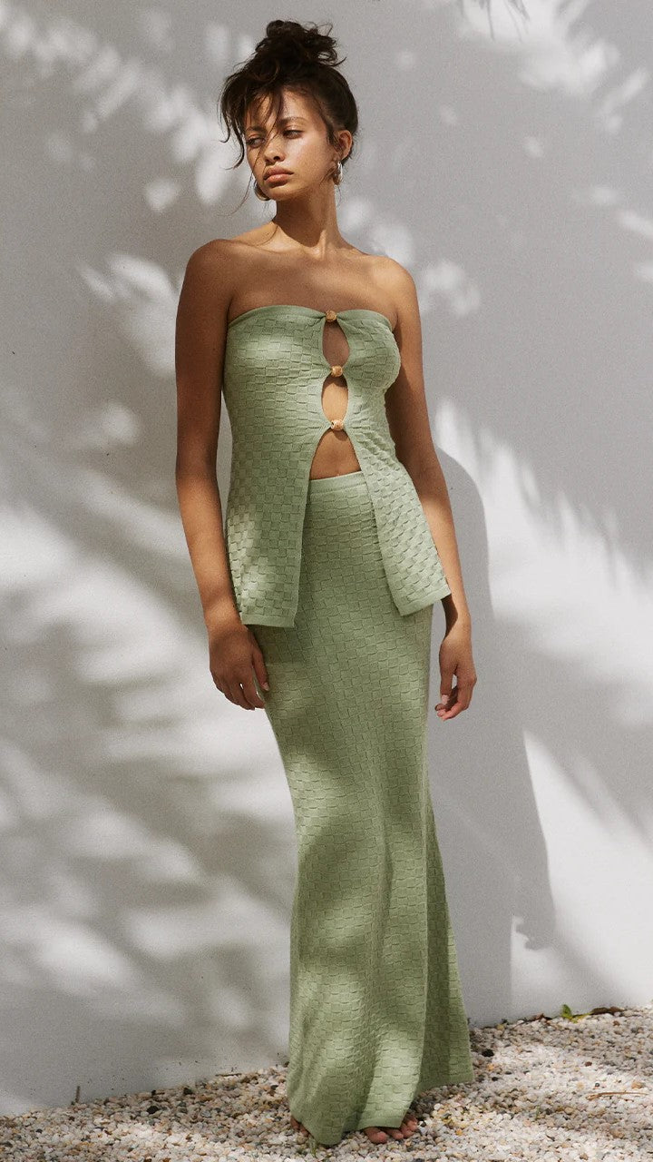 Get the look Wataya Skirt - Sage and Kamila Heel - Chalk